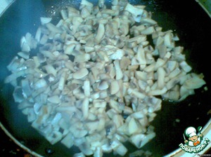 Грибы и лук мелко порезать и обжарить до готовности (желательно грибы и лук жарить отдельно).
