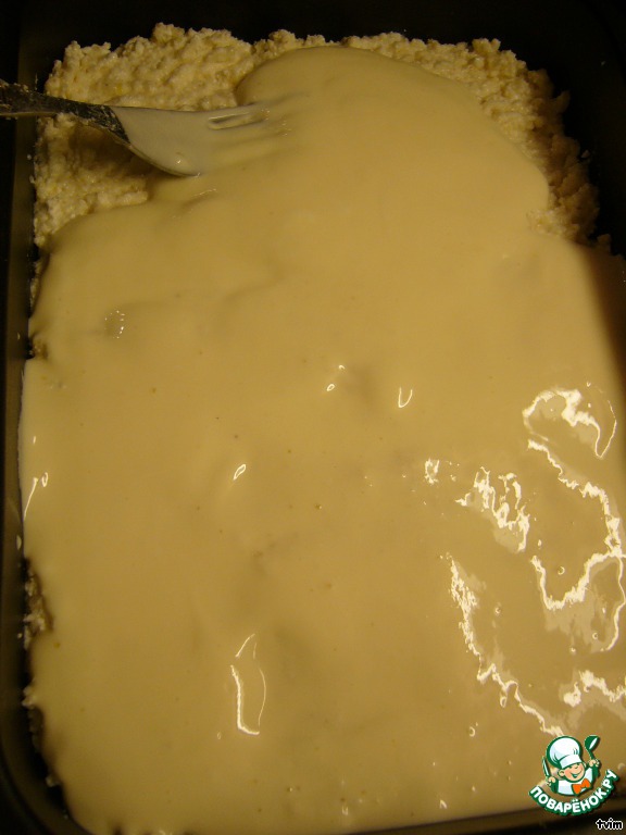 • Разравниваем вилочкой, лопаткой… И равномерно выливаем заливку.