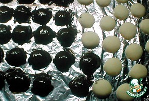 Из охлажденной массы скатать небольшие шарики (если она прилипает, обвалять в сахарной пудре или сухих сливках).