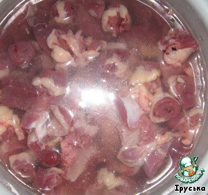 Куриные потроха нарежьте небольшими кусочками.