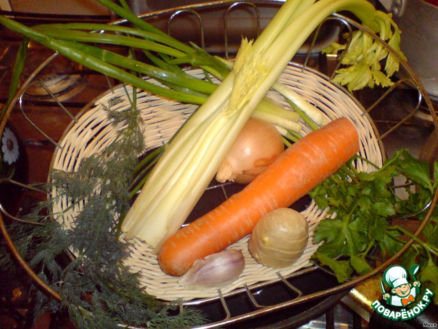 • Отдельно, на другой сковороде, на масле, обжарить мелко порезанные лук, морковь и сельдерей.