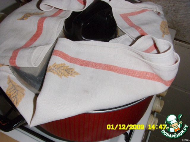Закрываем полотенцем крышку, чтобы оно впитывало испаряющуюся из риса влагу, и ставим на рассекатель.