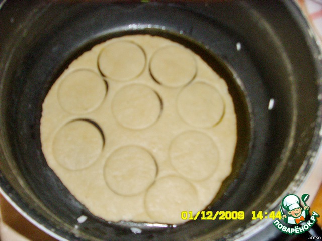 Леночка, да так и накрываем,ничего не убираем,а чтобы было мало излишков(хотя они и так улетят),как печенья вырезаем,старайся по больше кружков наделать.Стакан(то есть бери армуды,если есть,нет,то по меньше объем обычного стакана.)