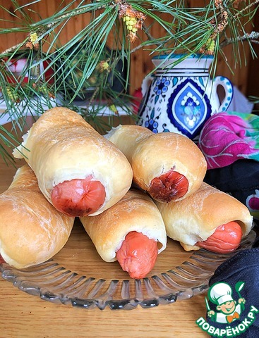 Рецепт этого блюда увидела на сайте "Кулинарный практикум" и поразилась простотой приготовления, но результат получился просто потрясающий, нежное тесто и сочные сосиски... Ммммммм, попробуйте, на сайте такого рецепта нет.