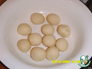 разрезать и скатать шарики, размер в зависимости от сковородки.