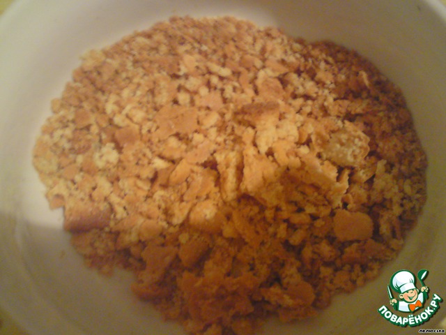 Из зажареного коржа готовим крошку, которой потом посыпаем торт.