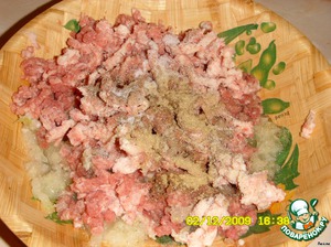• Заранее подготовьте фарш (из баранины) с луком и специями.