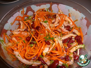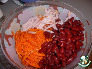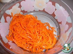 1. В салатницу - корейскую морковь.