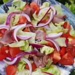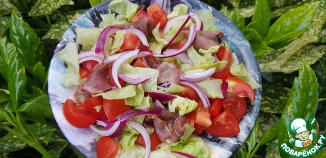 Ингредиенты для «Салат с копченостями и маринованным луком»: