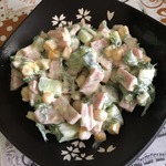 • Свежий огурец нарезать на кубики, добавить в салат.