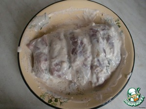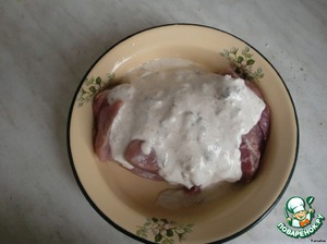 Обмазываем мясо соусом, солим, перчим, оставляем мясо мариноваться 1 час.