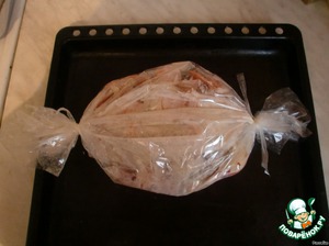 Аккуратно кладем мясо в рукав, оставшимся соусом из под мяса смазываем овощи и тоже кладем их в рукав к свинине. Завязываем края рукава и в духовку на 1 ч 20 мин при 220 градусов.