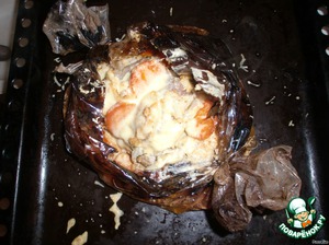 Когда мясо уже будет готово, можно разрезать рукав вдоль и посыпать сыром, чтобы оно было румяным, и снова в духовку на 10 мин. -