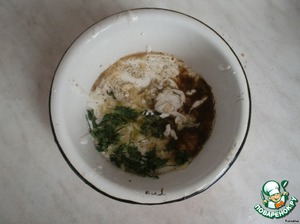 Делаем соус для смазки: смешиваем йогурт, выдавливаем чеснок, специи, сок половины лимона, кинзу.
