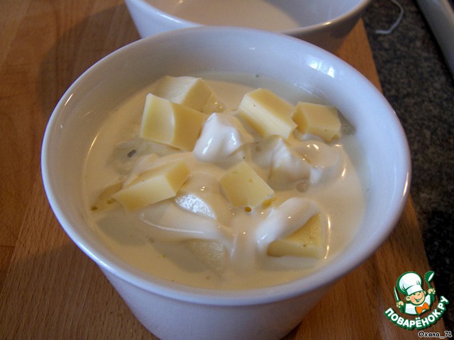 Фенхель отварила в молоке и воде со специями. Сыр приготовила.