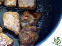 В той же сковороде обжарим со всех сторон кусочки мяса. |