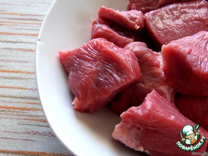 Мясо порежем на крупные кусочки. Помоем и высушим бумажной салфеткой каждый кусочек. |