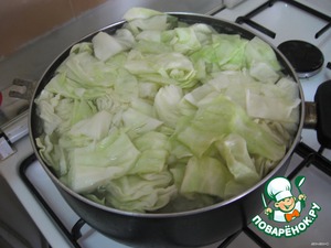 Капусту нарезать крупно и отварить до готовности.