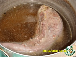 Где-то за 30 мин. до готовности положить соль, черный перец горошек и лавровый лист -