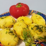 Когда зажарится, снимаем с огня, выкладываем на блюдо и, посыпав рубленым укропом, подаем к столу.