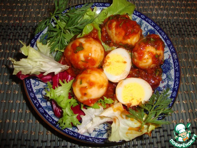 Нашла этот рецепт в нете в файлообменниках. Естественно, мимо такого я пройти не смогла. Как говорят: глаза боятся, а руки делают. Сделала (благо делается очень быстро, всего около суток) и когда попробовала..... думала, что съем соус вместе со своими руками. Яйца особо вкус не поменяли, но в сочетании с соусом это.... бомба (как для меня).