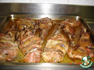При запекании следить, чтобы мясо не пересохло поливать маслом или вином, можно накрыть фольгой. Готовность определяем по внешнему виду: мясо отделяется от кости, но форма лопатки сохраняется. С лопаткой можно запекать овощи на гарнир: помидоры, целые луковицы, половинки картофеля.