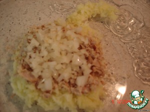 лук мелко порезать и замариновать в бальзамическом уксусе с имбирем.