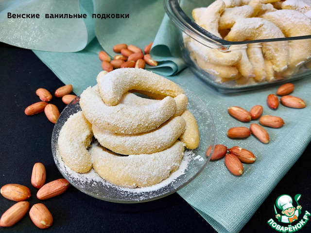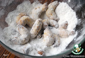 В оригинале рецепта сахарной пудры надо 1/2 чашки и ванильного сахара 5 пакетиков, но чашки и пакеты бывают разные, у меня ушло 100 гр и 50 гр соответственно. Остатками посыпала печенье сверху. -