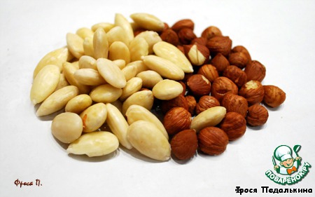 Миндаль ошпарить кипятком и снять шелуху, обсушить.