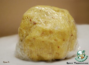 Вымесить песочное тесто. Если тесто суховато, можно добавить 1 ст.л. холодной воды. Тесто убрать в холодильник на 2 часа.