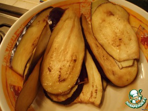 Накалить растительное масло и обжарить с двух сторон обсушенные бумагой ломтики баклажанов(чтобы масло не брызгало)