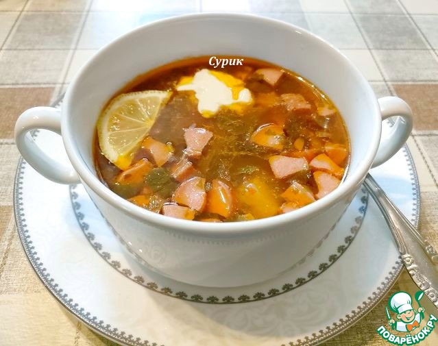 Эту солянку я готовлю обычно, когда в холодильнике собирается достаточно много остатков колбасных и мясных изделий. За фото к рецепту спасибо Людмиле Сурик.