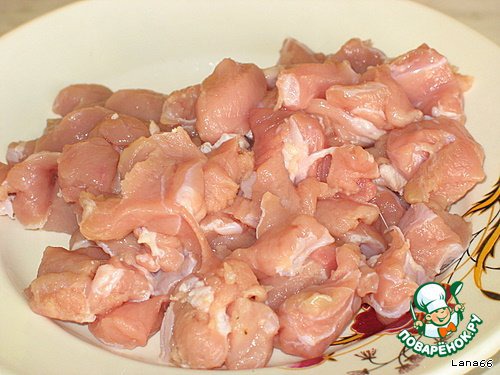 Мясо нарезать на маленькие кусочки (можно перекрутить через мясорубку).