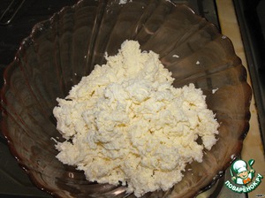 Творог перетереть (вилкой, через сито или любым другим приспособлением (можно даже блендером) до однородной массы, чтобы не было слишком крупных творожных комочков.