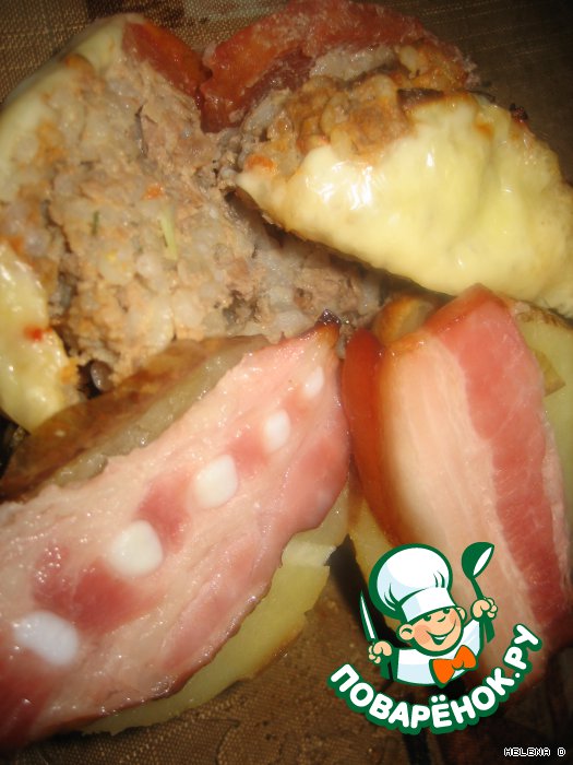 а на картофель грудинку... ну, а когда вынимать из духовки, вам подскажет исходящий из неё аромат!