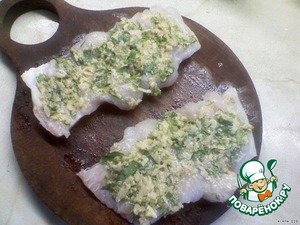 Рыбу посолить и намазать на каждый кусочек подготовленную сырную смесь.