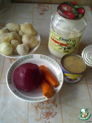 Всё порезать, добавить консервированную сельдь, майонез, соль, перец по вкусу и перемешать.
