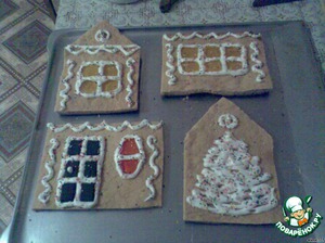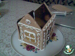 Наступил самый ответственный момент - сборка дома: низ и бока деталей промазать глазурью, осторожно собрать домик.