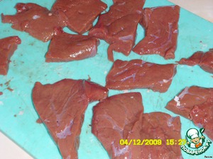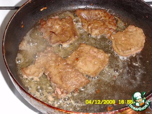 Отбить с 2-х сторон молоточком (бить без фанатизма))) Не бойтесь за печень, она "соберется" при жарке.
