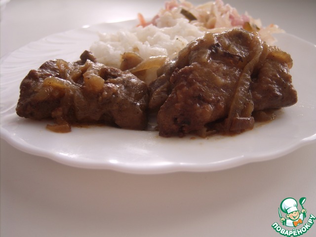 Нежная, приготовленная оригинальным методом печенка. Есть люди, которые не любят печень, как, например, tat70. Вот для Тани и для таких, как она, я и приготовила обещанную ей необычную печeнку. А заодно решила выставить еe на конкурс. Для конкурса журнала "Кулинарный практикум".