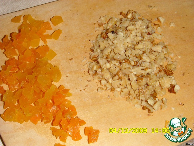 Печень с орехами, курагой.