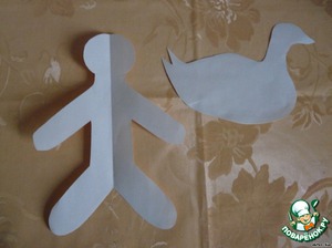 Пока тесто подходит, из бумаги вырезать шаблон человечка и гуся (примерно, 15 см).