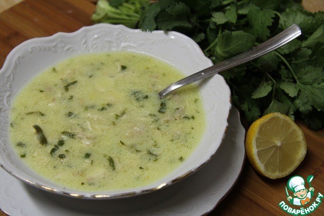 Яйца размешать венчиком и аккуратно добавить в горячий (но не кипящий) суп, размешать.