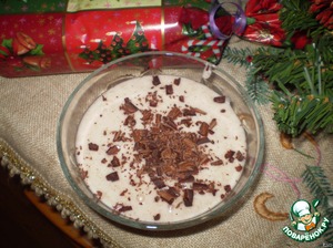 А теперь, собственно, рецепт приготовления. Развести ржаную муку водой. Влить массу в кипящую смесь воды и сока, проварить всe минут 10 -15 на маленьком огне, постоянно помешивая. Почти остывшую или холодную массу взбить в пышную пену. Украсить десерт тeртым шоколадом. Приятного всем аппетита!!!