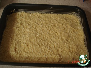 Прямоугольную форму смазать маслом, уложить массу и поставить на 45 мин при 200 гр.