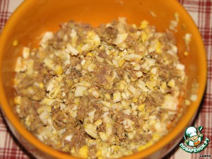 Начинка с тунцом: тунец размять и смешать с измельченным яйцом. Мясо тунца имеет столь благородный вкус, что японцы уверены - тунец питается сказочными подводными деликатесами. Мясо тунца на самом деле сокровище, оно содержит очень большое количество фосфора и витаминов. Важное его достоинство - при термообработке и консервировании почти не утрачиваются полезные свойства!!!