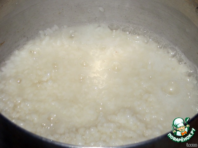 Для начала варим рис. Пропорция: 2 части риса на 3 части воды. В воду нужно добавить ложку рисового или яблочного уксуса. Традиционно рис для онигири не солят. Процесс варки занимает 12 минут. Первые 5 минут на сильном огне с открытой крышкой, остальное время с закрытой и на уменьшенном огне.