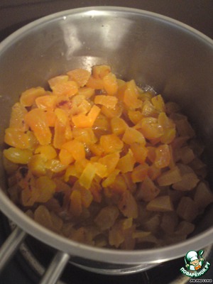 И хорошо прогреваю ее в сотейнике, через пару минут добавляю сахар и ждем еще минуты 2. Затем добавляем 0,5 стакана кипяченой воды, чтобы получился сироп с абрикосами. И варим на небольшом огне, пока сиропчик не загустеет.