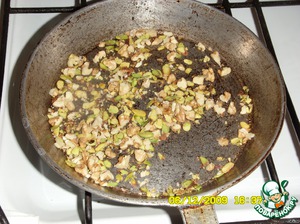 Для украшения: фисташки, орехи грецкие мелко порезать, обжарить слегка без масла на сковородке.