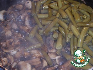 Грибы прожарить, потом добавить фасоль и минут 5 ещё потомить.